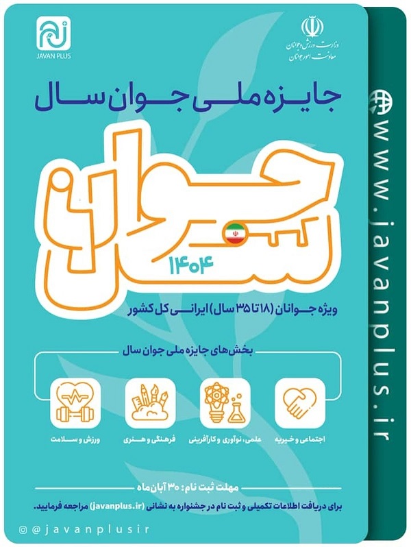 جایزه ملی جوان ۱۷ آبان ۱۴۰۴ | ۱۳:۲۴ کد : ۵۶۱۱۵ اطلاعیه ارسال به دیگران نام شما ایمیل شما ایمیل دریافتکننده ارسال انصراف تعداد بازدید:۱۳۲۳ جایزه ملی جوان سال ۱۴۰۴ فراخوان شرکت در جایزه ملی جوان سال ۱۴۰۴ منتشر شد.