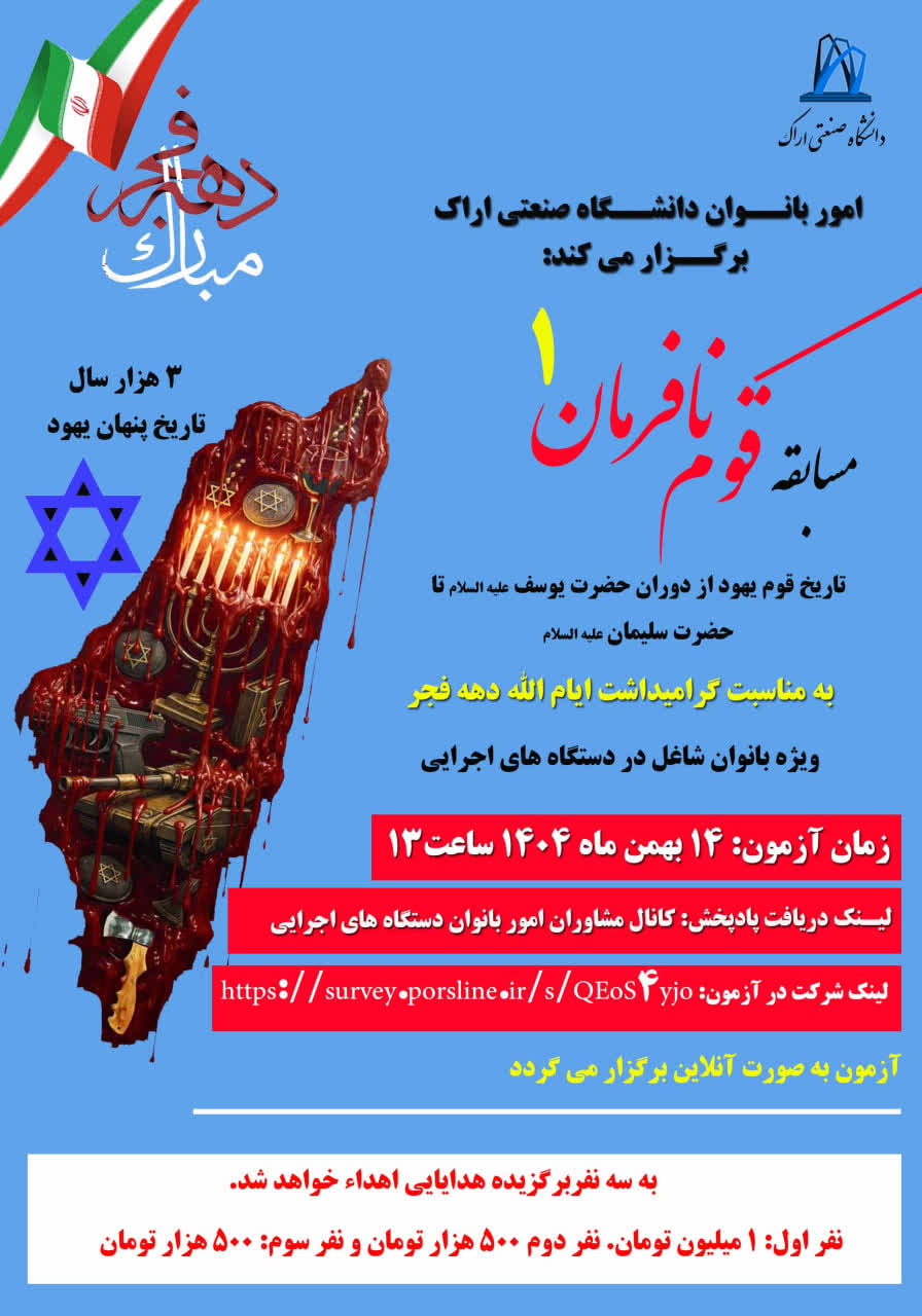 مسابقه قوم نافرمان ۰۸ بهمن ۱۴۰۴ | ۱۰:۳۹ کد : ۵۷۷۴۳ اطلاعیه ارسال به دیگران نام شما ایمیل شما ایمیل دریافتکننده ارسال انصراف تعداد بازدید:۶۹ برگزاری مسابقه قوم نافرمان، در ایام الله دهه فجر